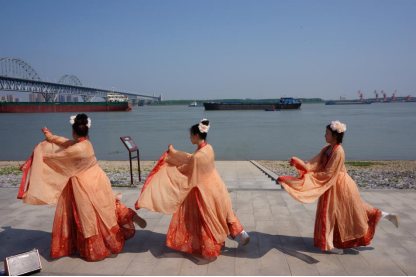 学员在长江江畔演绎《长江之舞》