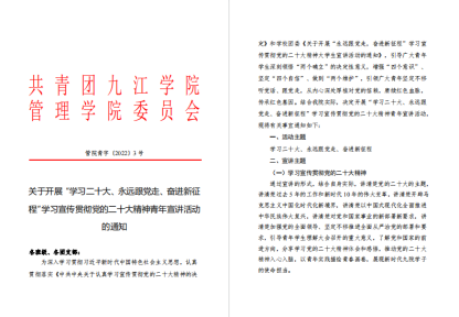 百年党史,日久弥新,芳华永驻。为学习宣传贯彻党的二十大精神,鼓励新时代青年追逐人生梦想,学院团委组织部举办“学思践悟二十大,砥砺奋进人生路”为主题的学习宣传贯彻党的二十大精神竞赛。
