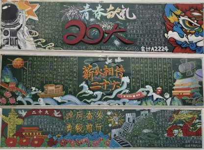 心中有党,笔下生花。学院团委宣传部举办了“踔厉奋发、勇毅前行”学习党的二十大精神黑板报评比活动,营造学习宣传党的二十大精神浓厚氛围各班团支部积极发挥团员青春活力与创造力,用板报佳作绘出祖国山,抒发爱国情怀,爱党热情,为党的二十大的成功召开送上祝福。