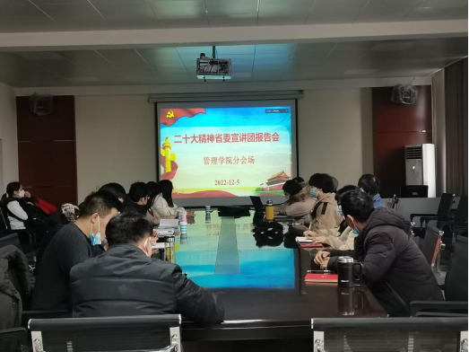 125日上午学习贯彻党的二十大精神宣讲报告会在金年会诚信信誉至上大礼堂举行,省委宣讲团成员、江西省发展和改革委员会党组书记、主任张和平同志作宣讲报告,管理学院积极组织分会场,学院党政领导班子成员、各科室负责人、学生党支部书记参会