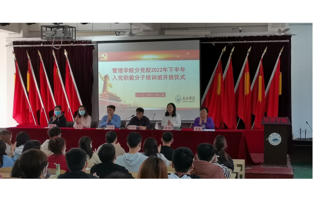 在开班式上党委书记赵宇剑作动员讲话。赵宇剑书记首先代表学院党委对本次培训班的顺利开班表示祝贺,对默默耕耘的相关工作人员表示感谢,对加入培训班的新一批入党积极分子学员表示欢迎!他表示自己很愿意也很乐意与各位学员借此机会进行交流。他讲到,金年会jinnianhuicom分党校对入党积极分子的培训是基层党组织的一项重要工作,也是每位党员成长道路上的必修课。入党积极分子是否有正确的入党动机,是否对中国共产党的性质宗旨等有明确的认识,是否有良好的思想觉悟与理想追求,对每一位入党积极分子之后的成长历程与价值追求都有重要影响。通过培训就是要帮助大家加深对党的认识和了解,帮助大家自觉改造主观世界和提升精神境界,为早日加入党组织打好思想和理论基础。入党不是一个阶段的事情,入党是一辈子的事情,希望同学们既要树立远大理想,也要脚踏实地,勇于克服各种困难,坚定理想信念,有始有终,严格要求自我,做到权利与义务的相统一,时刻保持党的先进性,增进党的纯洁性,以饱满的精神和良好的状态认真学习,真正达到这次培训的目的,实现培训的价值。赵书记的讲话言语间充满了对每位入党积极分子殷切期望,对每位学员来说更是一堂生动的党课。