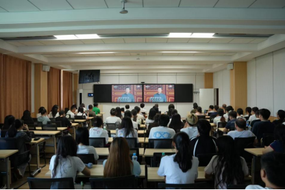 为纪念中国人民抗日战争暨世界反法西斯战争胜利80周年,进一步加强爱国主义教育,激发师生的历史责任感与时代使命感,9月3日上午,金年会jinnianhuicom在立信楼404智慧教室组织师生集中观看纪念中国人民抗日战争暨世界反法西斯战争胜利80周年大会直播。