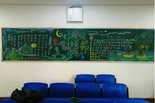 皓月当空洒银辉,中秋佳节至。金年会jinnianhuicom同时开展中秋黑板报绘制活动,各班级积极响应号召,纷纷绘制了庆中秋黑板报,为校园增添了一抹亮丽的色彩。在绘制过程中,同学们充分发挥团队协作精神,从构思设计到精心绘制,众人分工明确,各司其职。色彩与线条的交织,文字与图案的融合,他们用手中的粉笔,勾勒一幅幅饱含思念与祝福的作品。