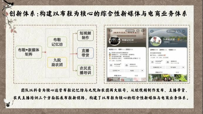 但如果将消费者定位为深受注重悦己消费,民族认同感高的85后至00后,将布鞋,与他们所喜爱的智能科技、国潮设计相结合,不就能解决这一问题了吗?于是“百重山”,一个集原创设计、直播培训、科技引流、新媒体营销、农民就业全覆盖的新型农业产业链逐渐有了雏形。