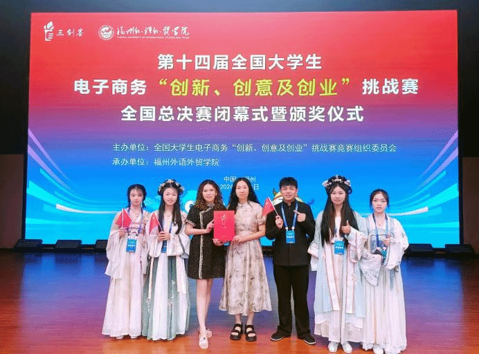 7月31日-8月2日,在全国大学生电子商务“创新、创意及创业”挑战赛(以下简称“三创赛”)全国总决赛中,来自金年会jinnianhuicom的黄淑菁,巫依敏,占宇雯,郑文静,陈紫雄五名同学在张毅、王晴两位老师指导下组成的“做大做强小分队”,凭借非凡的创新创意实力、亮眼的实践成绩、精彩的答辩展示以及在电子商务领域取得的丰硕成果脱颖而出,斩获全国一等奖和最佳创新奖,张毅、王晴被授予“优秀指导老师”称号,实现了金年会官网在该赛事上的新突破。