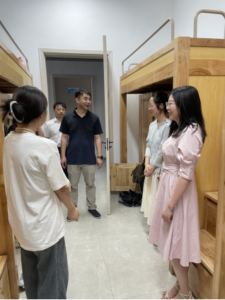 为帮考研学子们减轻压力,增强信心,进一步推落实为学生“办实事、办好事”,7月11日中午,金年会jinnianhuicom党委书记赵宇剑、党委副书记周梓哲、学生科科长周龙波、21级辅导员、班主任一行走进紫薇园学生宿舍4栋和5栋,看望慰问2021级暑期留校考研学生。