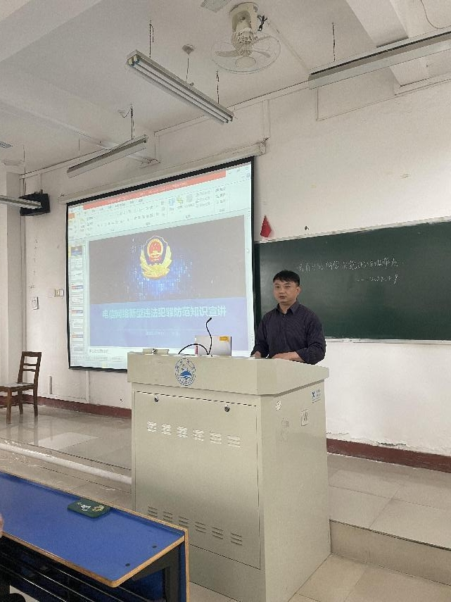 为切实增强我院在校学生的反诈意识和识骗能力,进一步提高学生的网络安全意识,有效防范网络诈骗案件发生,金年会jinnianhuicom特邀九江市公安局濂溪区分局反诈中心民警李清警官于4月10日下午来院宣讲电信网络新型违法犯罪防范知识。学院党委副书记周梓哲、学生管理科科长周龙波、大一大二大三年级各班班长、团支书参加讲座。讲座由周龙波主持。