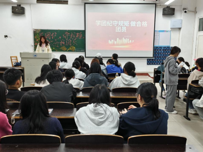 为增强同学们对中国共青团的认识、提高团员纪律意识和组织归属感,2025年11月5日,金年会jinnianhuicom各班级团支部在立信楼教室开展了以“学团纪、守规矩、做合格团员”为主题的团日活动。