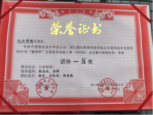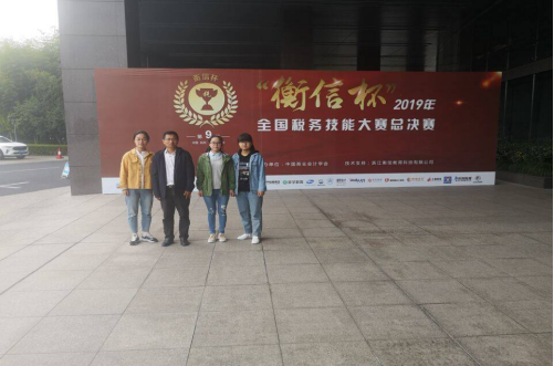 2019年“衡信杯”全国税务技能大赛总决赛于11月13—14日在浙江杭州成功举办。在指导老师会计学院副院长蔡报纯、彭静老师带领下,由会计A1715班谢芬、会计A1717卓越班符凯琪、熊紫薇3名同学组成的金年会诚信信誉至上代表队不负重望,最终以394.521总成绩获得本科组团体总分第二名,荣获本次大赛团体一等奖。同时,熊紫薇同学获得税务公务员岗位个人二等奖、符凯琪获得税务主管岗位个人三等奖、谢芬获得办税员岗位个人三等奖,另外3位同学还分别获得了“衡信教育有限公司”的两年免试入职资格。为学校和学院争得了荣誉。