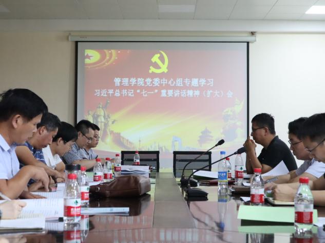 金年会jinnianhuicom于9月15日下午在立信楼504召开金年会jinnianhuicom党委理论中心组专题学习习近平总书记“七一”重要讲话精神(扩大)学习会,会议由金年会jinnianhuicom党委书记吴铃主持,学院党委委员和各支部党支部书记参加了会议。