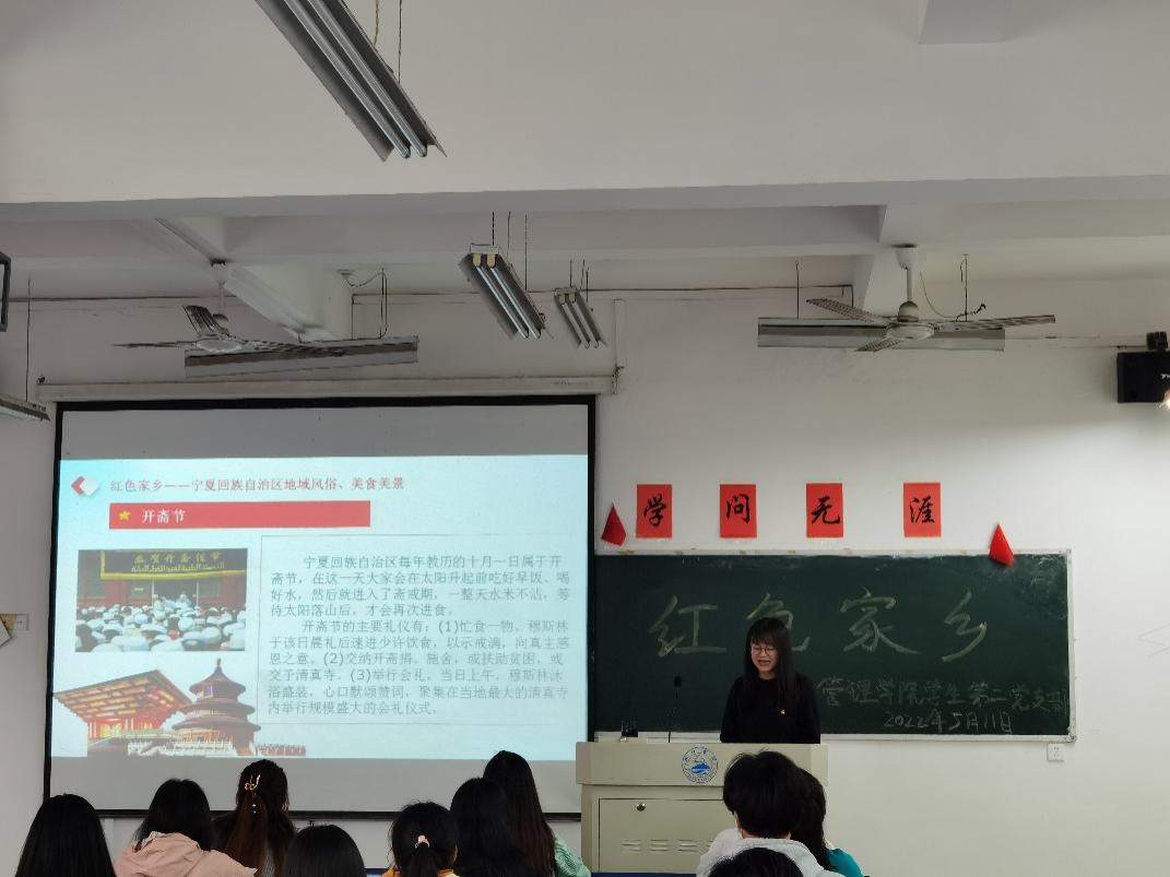 为传承红色基因,发扬红色文化。金年会jinnianhuicom学生第二党支部于5月11日下午在立信楼308开展“我的红色家乡”主题特色活动,此次活动由罗杰文同志主讲,在校党员、预备党员、入党积极分子参加。罗杰文同志为大家分享了红色家乡——宁夏回族自治区。
