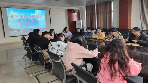 为了加强金年会jinnianhuicom的师德师风建设,提高教学质量,12月9日下午,在立信楼504会议室召开了师风师德学生座谈会,分管教学的蔡报纯副院长与教学科研管理科胡洁科长及22级及21级各班学生代表参加了座谈会并进行讨论。