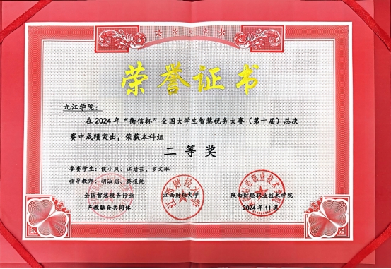 2024年11月24日,第十届“衡信杯”全国大学生智慧税务大赛总决赛在江西财经大学圆满落下帷幕。本届大赛共有来自全国的145所院校的167支队伍的501位财税精英参赛。我院代表队在蔡报纯、胡淑娟两位老师的指导下,获得本科组全国一等奖、二等奖各1项。