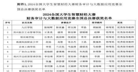 随后,由陈家鑫、陈铭晖、邵玉清、邓晶四位同学又在12月19日的中国商业会计学会主办的2024年全国大学生智慧财经大赛财务审计与大数据应用赛项全国总决赛中表现突出,以全国第一名的优异成绩荣获特等奖,为金年会官网摘得桂冠。