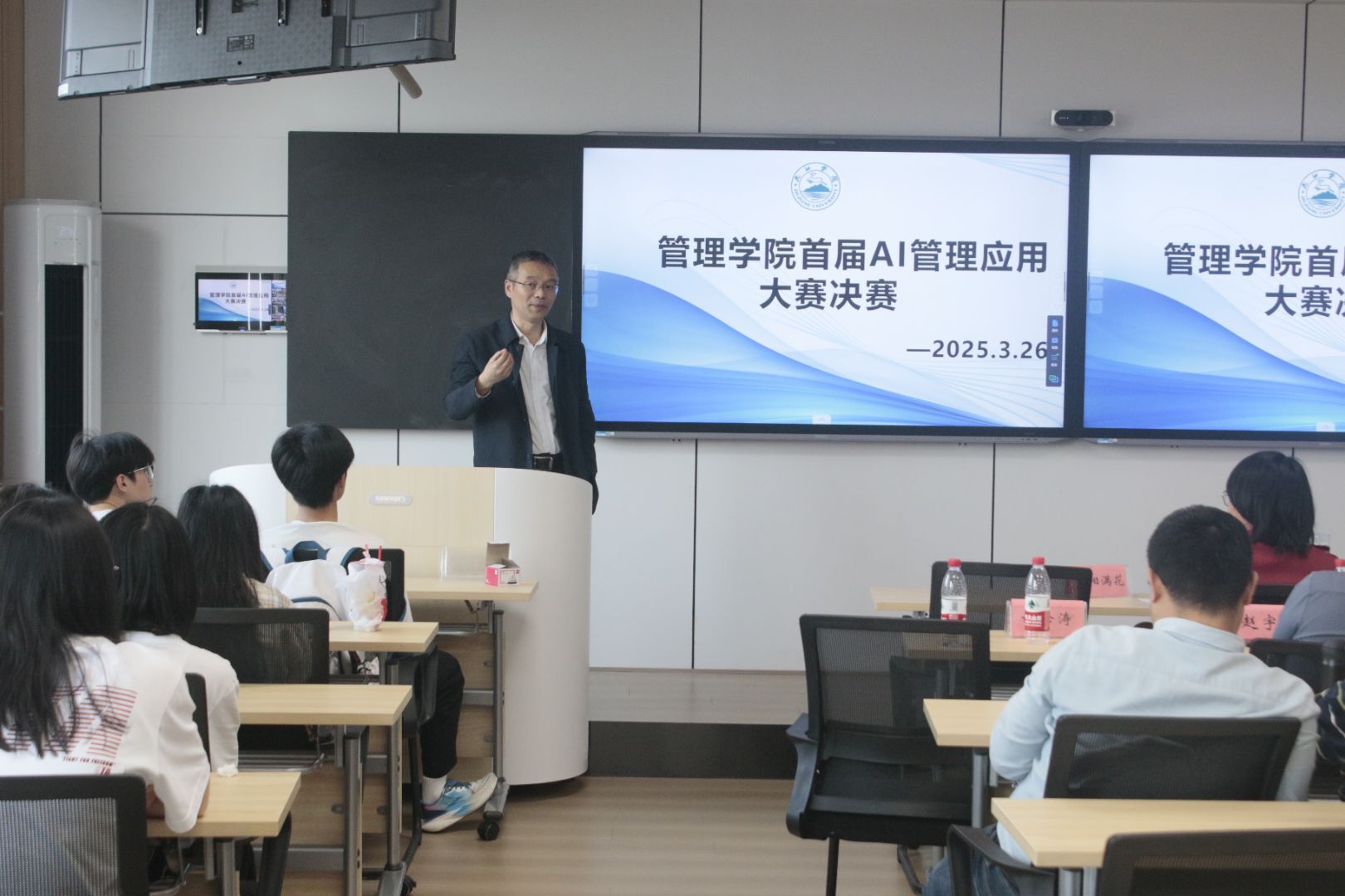 许松涛院长在赛后点评中指出:“AI管理应用作为极具变革性的技术,其应用前景将深刻影响社会各领域。本次大赛高度契合数字化时代发展需求,有效引导师生在参赛过程中激发对人工智能前沿技术的认知,全方位提升师生AI管理应用能力。从同学们的方案中,欣喜地看到大家敏锐捕捉到了AI在管理领域的多元可能性,无论是优化流程、提升效率,还是挖掘潜在数据价值,都做出了有益尝试。获奖的这6支队伍,凭借独特视角和扎实实践脱颖而出。下一步,学院将持续搭建创新平台,为同学们提供更多资源与支持,助力大家将创意转化为推动社会进步的实际动力。