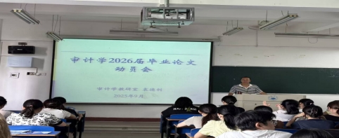 审计学教研室主任袁德利博士重点阐述了毕业论文的写作目的、选题原则与撰写规范,强调论文应立足审计实践,体现实务能力与创新意识。他提醒同学们注意避免选题误区,严守学术规范和时间节点,积极与导师保持沟通。