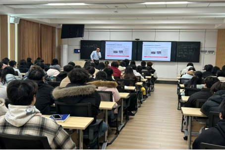 张聪伟先生首先从行业变革切入,指出数字技术的飞速发展正深刻改变物流行业的人才需求。物流业逐步走向集约化、智能化,未来将实现全程智能化管理。在此背景下,行业对具备物流管理与技术研发复合背景的人才需求日益迫切,尤其是熟悉智能平台、自动化设备的科研型、国际型物流人才。他对比了传统岗位与新兴技术岗位,强调“随着智能技术普及,企业对于人才的需求正逐步向技术技能型转变”,鼓励同学们主动拥抱技术,拓宽技能边界。