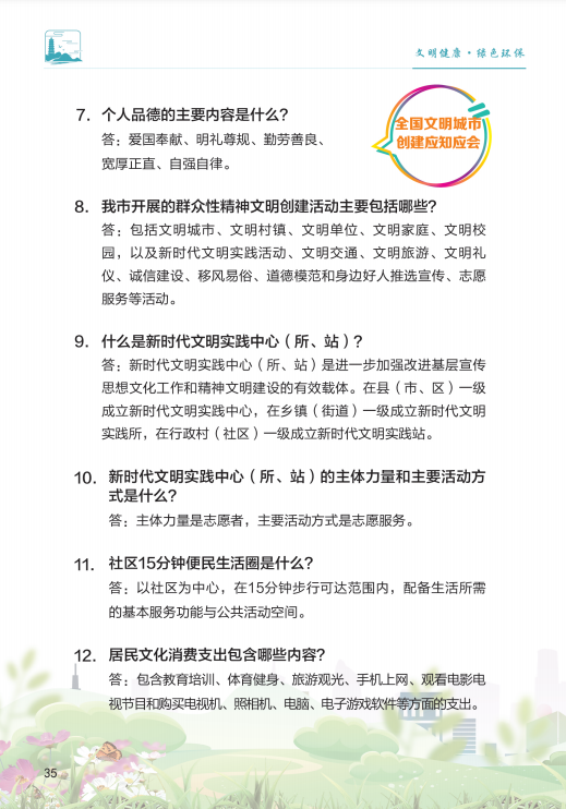 移风易俗,争当文明创建的引领者。弘扬时代新风,践行公民道德,热心公益,邻里互助;维护市容,保护环境。崇尚社会公德,善做好人好事;崇尚职业道德,争相爱岗敬业;崇尚家庭美德、注重家风家教;崇尚个人品德,提升自身修养。爱国守法,诚实守信。