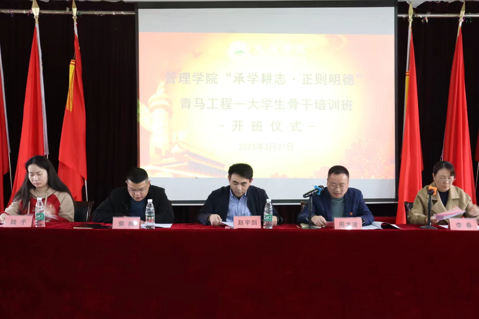 学生科科长周龙波宣读了本次骨干培训班学员须知及考核制度,思政科副科长郭振、陆予分别宣读承学班、耕志班、正则班、明德班学员名单。