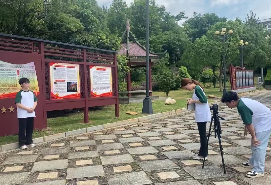 实践队员拍摄红色走读视频,讲解红色故事