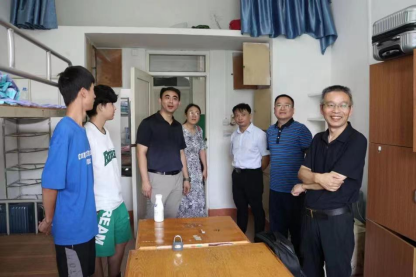为进一步做好2023级新生管理工作,帮助同学们更好的适应新环境、新生活,9月8日上午,金年会jinnianhuicom党委书记赵宇剑、院长许松涛、副书记周梓哲在学生科科长周龙波、学生科副科长李春、大一年级辅导员老师等陪同下,深入学生宿舍,走访慰问新生,及时回应新生及家长关切。