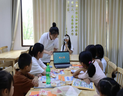 推普声起传千里,支教情深润心田。实践队员将推广普通话作为助力乡村振兴的重要抓手,在城门乡贤馆开展抢答竞赛、绕口令挑战、诗词朗诵等系列活动,向乡村儿童讲解普通话的相关知识,在他们心中播下对国家通用语言文字的热爱之种,以“推普+教育”形式拓宽乡村教育发展渠道,助力语言赋能乡村振兴,为乡村地区的广大群众提供更好的语言文化服务,助力乡村全面振兴。