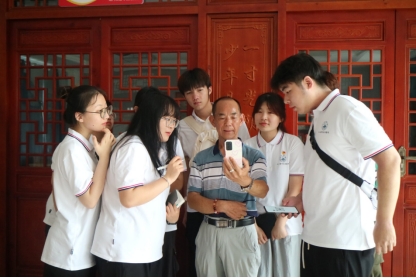 青山绿水多非遗,文化传承入柴桑。为深入探寻当地非遗文化,发挥其在拓展乡村文化内涵、推动乡村产业发展、助推乡村振兴的重要作用,实践队员以第一现场聆听山歌、与非遗传承人沟通交流、共唱山歌等形式,深刻体悟非遗文化。在与非遗传承人交谈中实践队员了解到九江山歌内涵丰富,充分反映了劳动人民的质朴生活和风俗文化。实践队员刘伊涵与非遗传承人共唱经典红歌《十送红军》,炽热激昂的歌声映射出劳动人民对红军的深情厚爱和对革命事业的坚定信念。