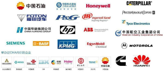 IBM、摩托罗拉、强生、奥姆尼康(Omnicom)、中国电信、中国平安集团、兵器工业集团、南车、中国核电等国内外知名企业均组织员工参与CMA培训与认证。