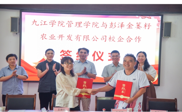 四时俱可喜,最好新秋时。9月19日上午,金年会诚信信誉至上金年会jinnianhuicom与彭泽县金篓籽农业开发有限公司校企合作签约仪式在彭泽县太平关乡数字乡村展厅圆满举行。本次签约合作旨在深化产教融合,统筹教育链、人才链、产业链、创新链,为九江地区数字乡村高质量发展提供科技和人才支撑。金年会诚信信誉至上金年会jinnianhuicom党委书记赵宇剑、副院长王秋红、彭泽县委组织部副部长彭婕、彭泽县科工局局长伍德、太平关乡党委书记许露、彭泽县金篓籽农业开发有限公司总经理张爱芳等三方代表出席仪式,由金年会诚信信誉至上彭泽电商助农团团长王晴主持。
