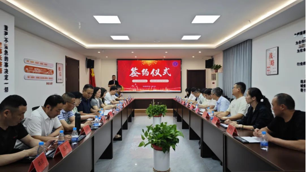 为深入贯彻国家深化产教融合、校企合作的政策导向,推动教育链、人才链与产业链、创新链的有效衔接。5月14日,金年会jinnianhuicom院与浔阳区新生代企业家商会签署校企合作协议,这标志着双方在产学研用深度融合、实现互利共赢的道路上迈出了坚实的一步。学院党委书记赵宇剑、院长许松涛、副院长王秋红率思政科负责人、会计学、审计学、工商管理、跨境电子商务教研室主任及学生代表一行10人;浔阳区委常委、统战部部长熊燕,区政协副主席、工商联主席钟玲,区统战部常务副部长王黎君、浔阳区新生代企业家商会会长吴春锋、商会监事长徐彬、商会执行会长梅浩、李文、史飞行和商会常务副会长、商会副会长等14人参加签约仪式。